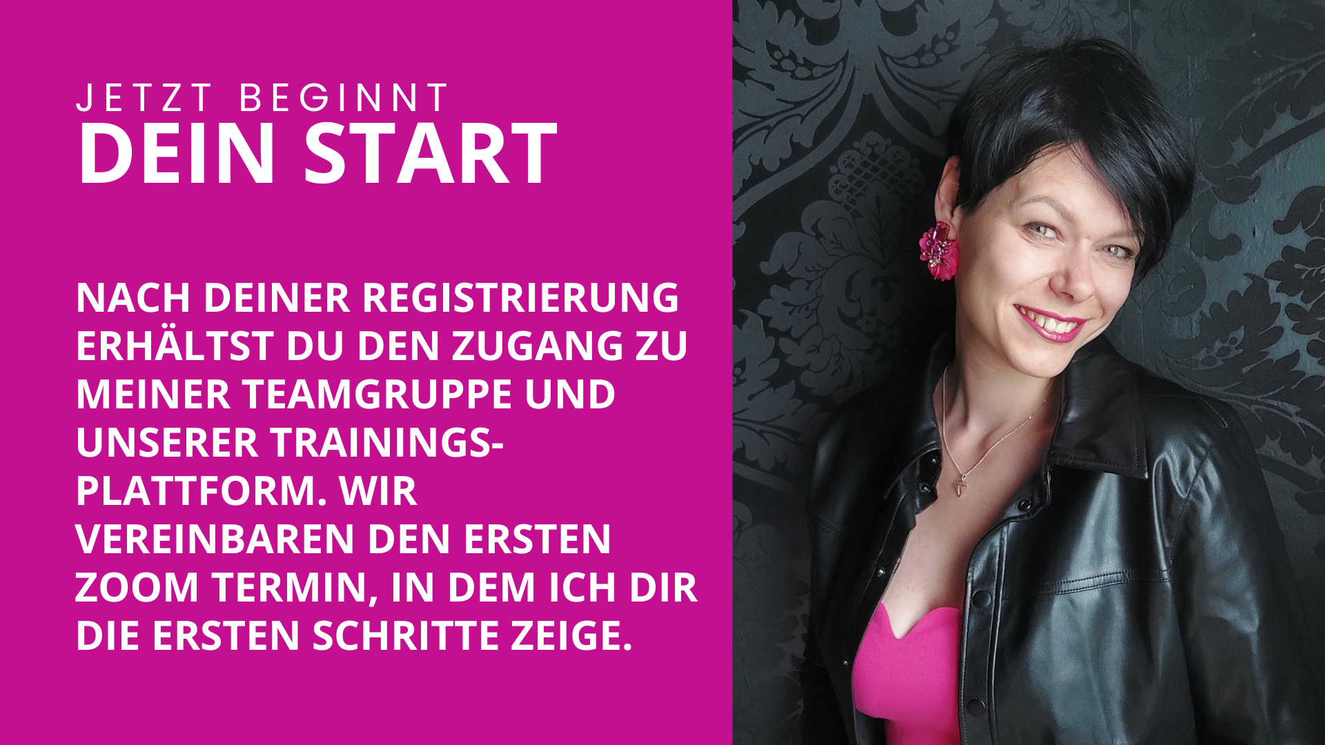 Wähle dein Startpaket aus und registriere dich als Teampartnerin. bei der Anmeldung musst du deine Bürger ID angeben, mit der geprüft wird ob du 18 Jahre bist. Das ist eine 6-stellige Zahl, die du auf deinem Ausweis findest.
